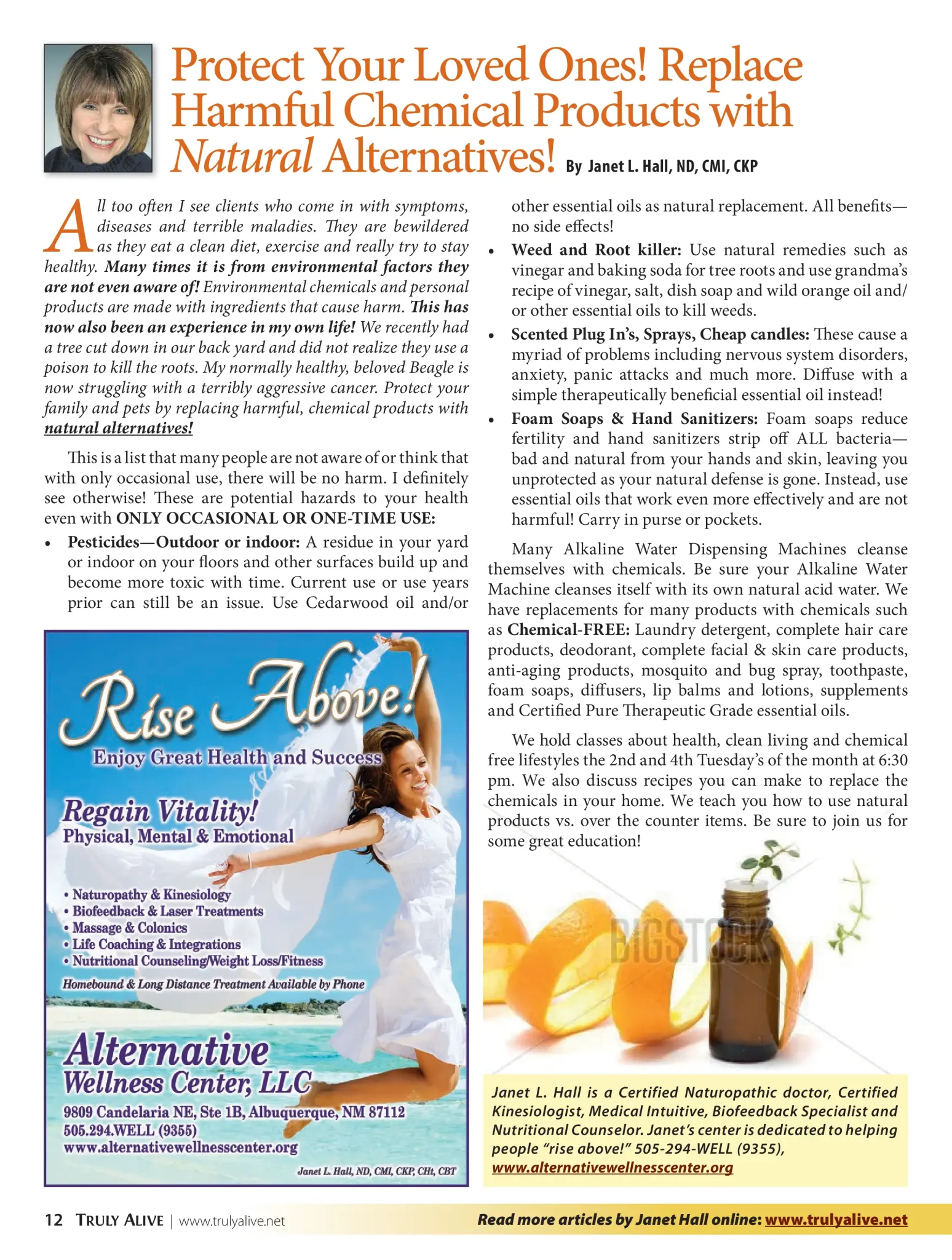 All too often I see clients who come in with symptoms, diseases and terrible maladies. They are bewildered as they eat a clean diet, exercise and really try to stay healthy. Many times it is from environmental factors they are not even aware of! Environmental chemicals and personal products are made with ingredients that cause harm. This has now also been an experience in my own life! We recently had a tree cut down in our back yard and did not realize they use a poison to kill the roots. My normally healthy, beloved Beagle is now struggling with a terribly aggressive cancer. Protect your family and pets by replacing harmful, chemical products with natural alternatives!