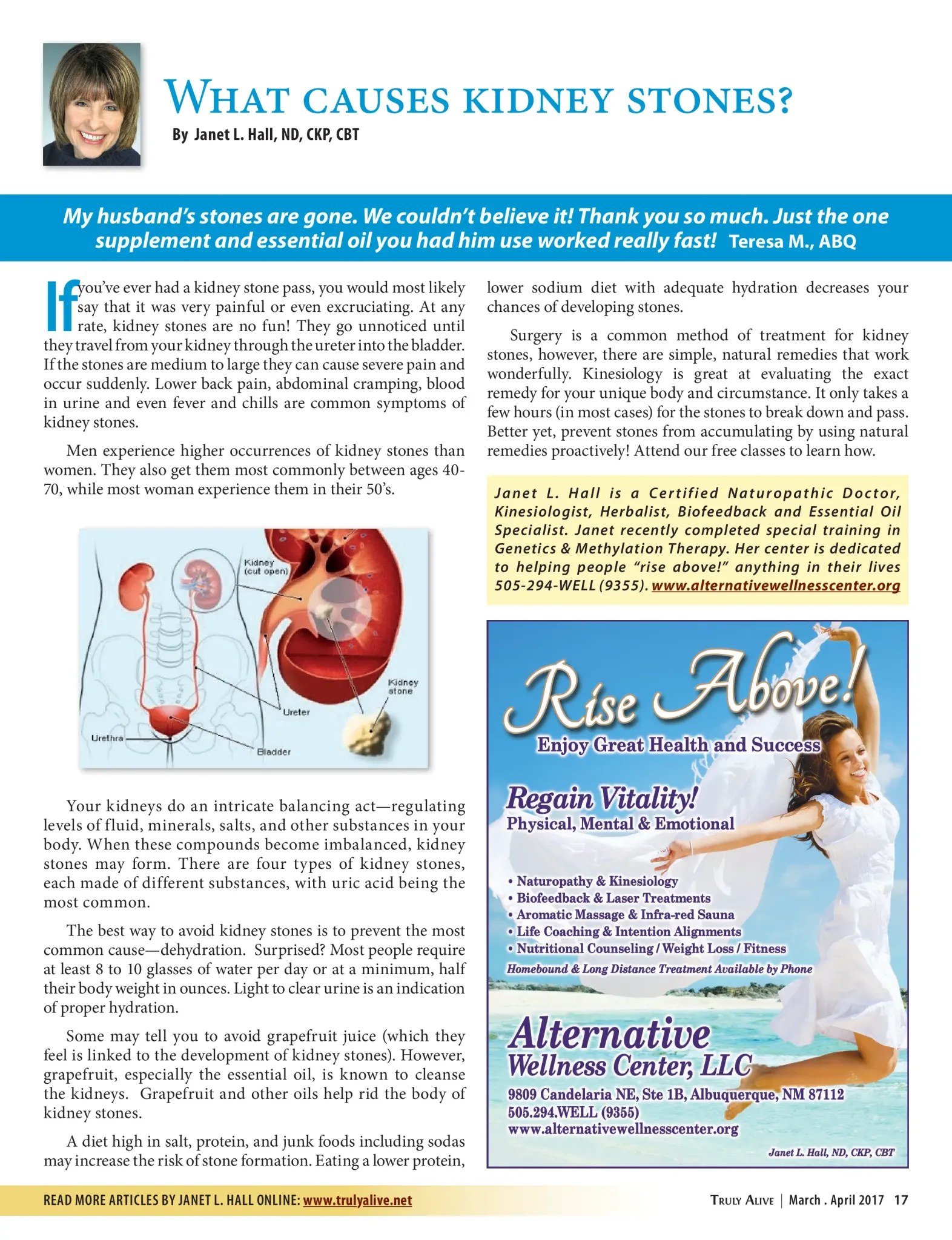 “My husband’s stones are gone. We couldn’t believe it! Thank you so much. Just the one supplement and essential oil you had him use worked really fast!” — Teresa M., ABQ